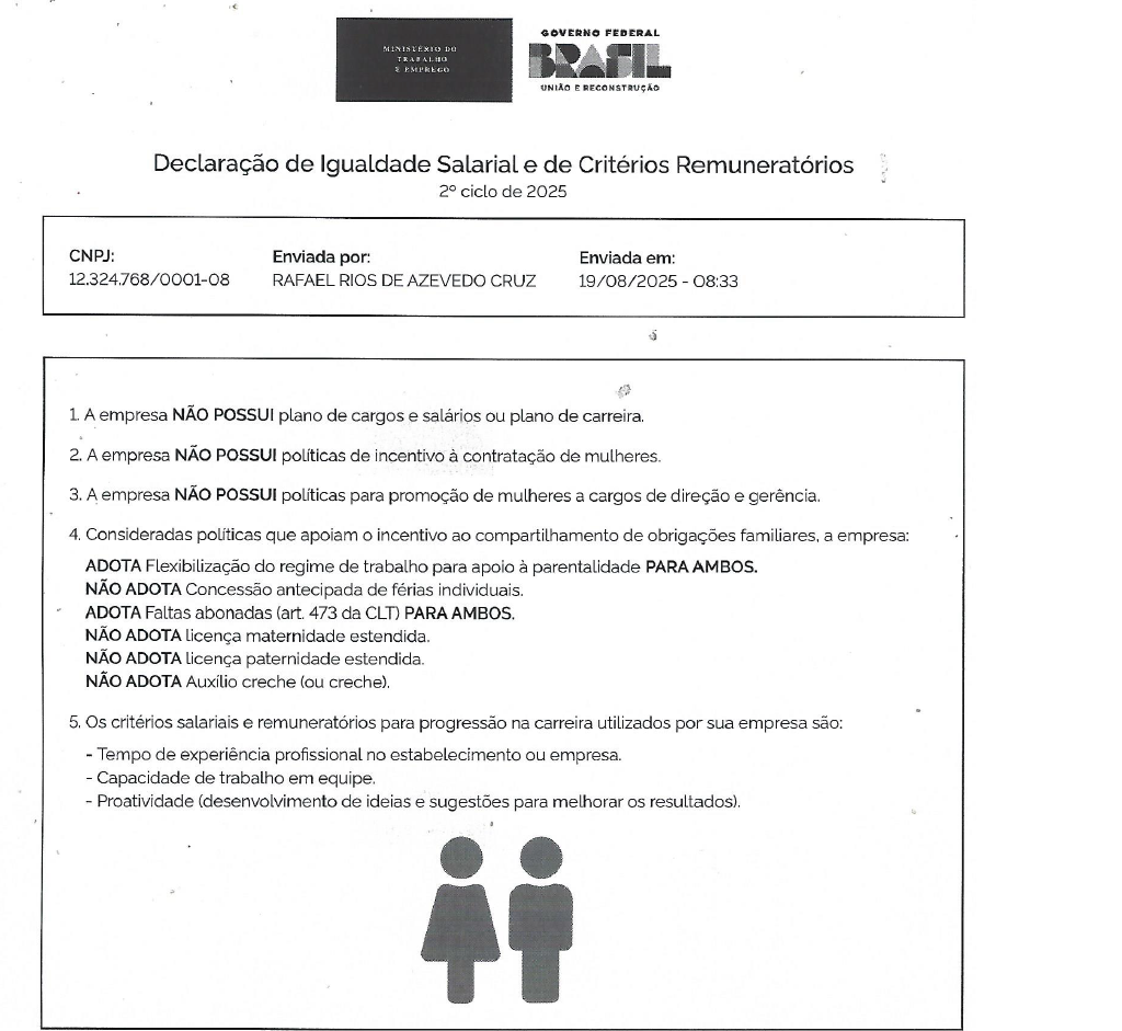 Declaração de Igualdade Salarial e de Critérios Remuneratórios